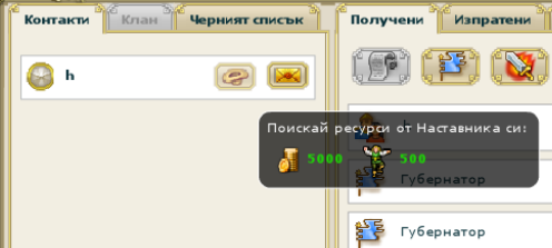 Ученикът може да поиска ресурси за развитие веднъж на денонощие като натисне бутона «Поискай ресурси» в Съобщенията. Това винаги е същият комплект ресурси: 5 000 злато и 500 население.