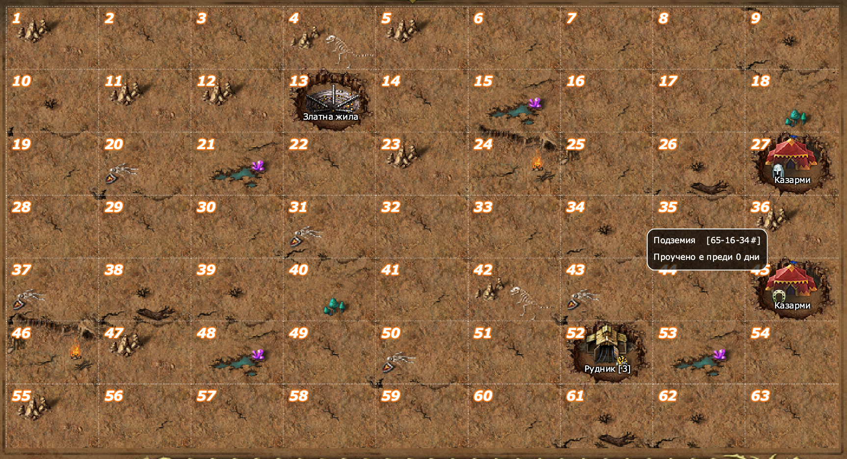 Всяка клетка на Подземието дублира всяка клетка от земното царство и също има еднакви координати, маркирани #